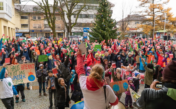 Trotz strömendem Regen kamen ca. 700 Teilnehmer zum globalen Klimastreik von Fridays for Future auf den Sonthofener Rathausplatz. Auch Oberstdorf for Future war wieder zahlreich vertreten.